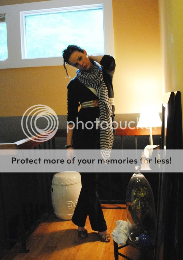 I love taking ordinary pieces that are pretty bland on their own and throwing somehting abnormal into the mix.. Such as I did here when i threw on a striped scarf and belt and then a completely different colored pair of shoes. It changes things up a bit and makes the work day more bareable.. :) Please excuse messy hallway and horrible lighting..